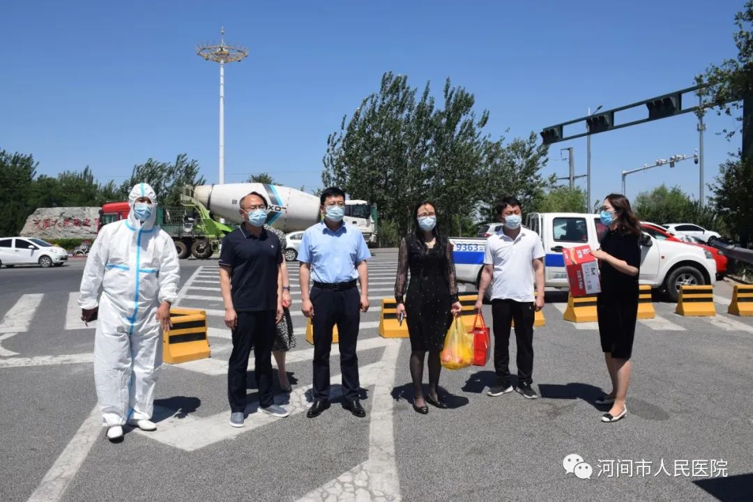 2022年5月30日上午,雷竞技入口黨(dang) 委書(shu) 記李記濤、院長趙景坡、副院長李冬梅帶領部分職能科室人員,看望慰問了我院堅守在高速路口執行核酸檢測采樣的工作人員,並送去了慰問品。
