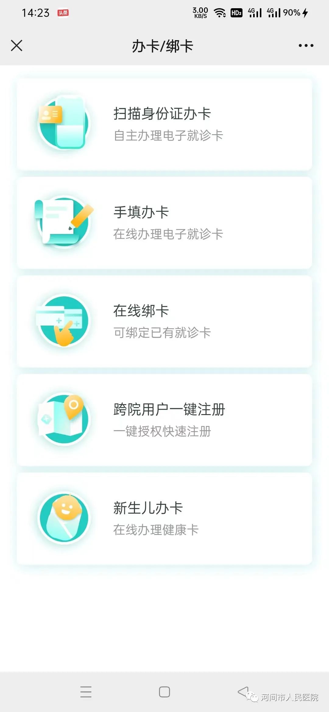 點擊【就診卡】或公眾(zhong) 號發送的辦理【電子就診卡】的消息,辦理【電子健康卡】,無卡患者可填寫(xie) 就診人信息辦理電子健康卡,就診過的患者可綁定已有健康卡;
