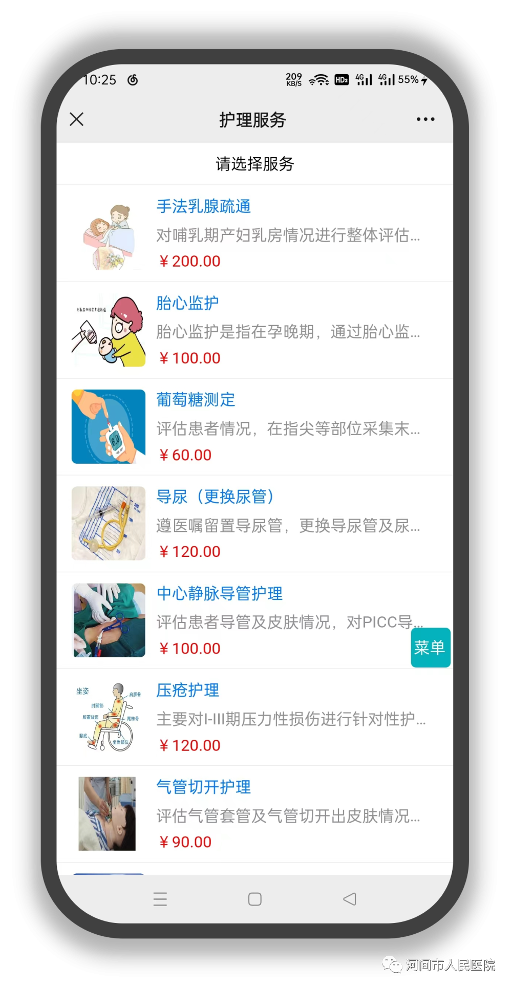 為(wei) 積極響應國家政策,提高出院患者的後續服務質量,我院借助“互聯網+護理服務”平台,在公眾(zhong) 號推出線上“網約護理”服務,充分發揮醫院護理隊伍的專(zhuan) 業(ye) 技術優(you) 勢,把優(you) 質護理服務資源下沉,將護理延伸至家庭,為(wei) 河間市的老百姓提供更加便捷、高效、滿意的護理服務。
