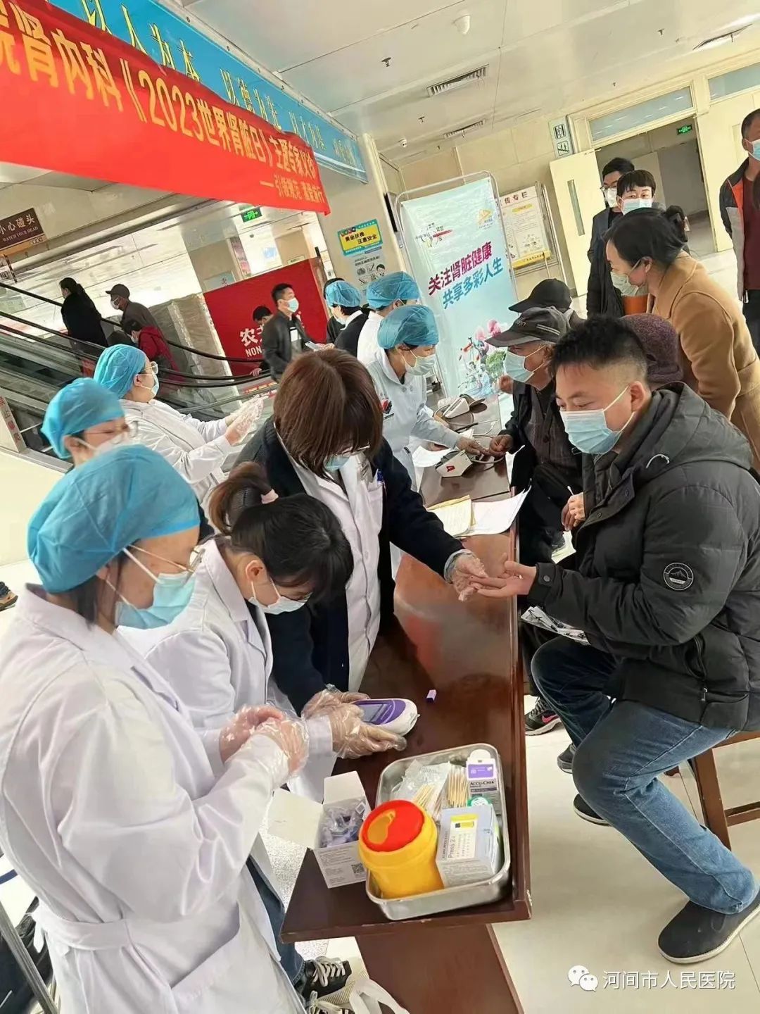 每年三月份的第二個(ge) 星期四是世界腎髒病日。“世界腎髒病日”的設立目的是呼籲提升大眾(zhong) 對腎髒健康的認知,更好的嗬護腎髒。今年世界腎髒日主題為(wei) :人人享有腎健康——關(guan) 愛高風險人群,預防意外腎損傷(shang) 。為(wei) 更好普及大眾(zhong) 健康知識,進一步加深公眾(zhong) 對慢性腎髒病的了解和認識,對腎髒疾病作出預防和早期的治療,近日雷竞技入口腎內(nei) 科在門診一樓大廳舉(ju) 行“世界腎髒病日”義(yi) 診活動。