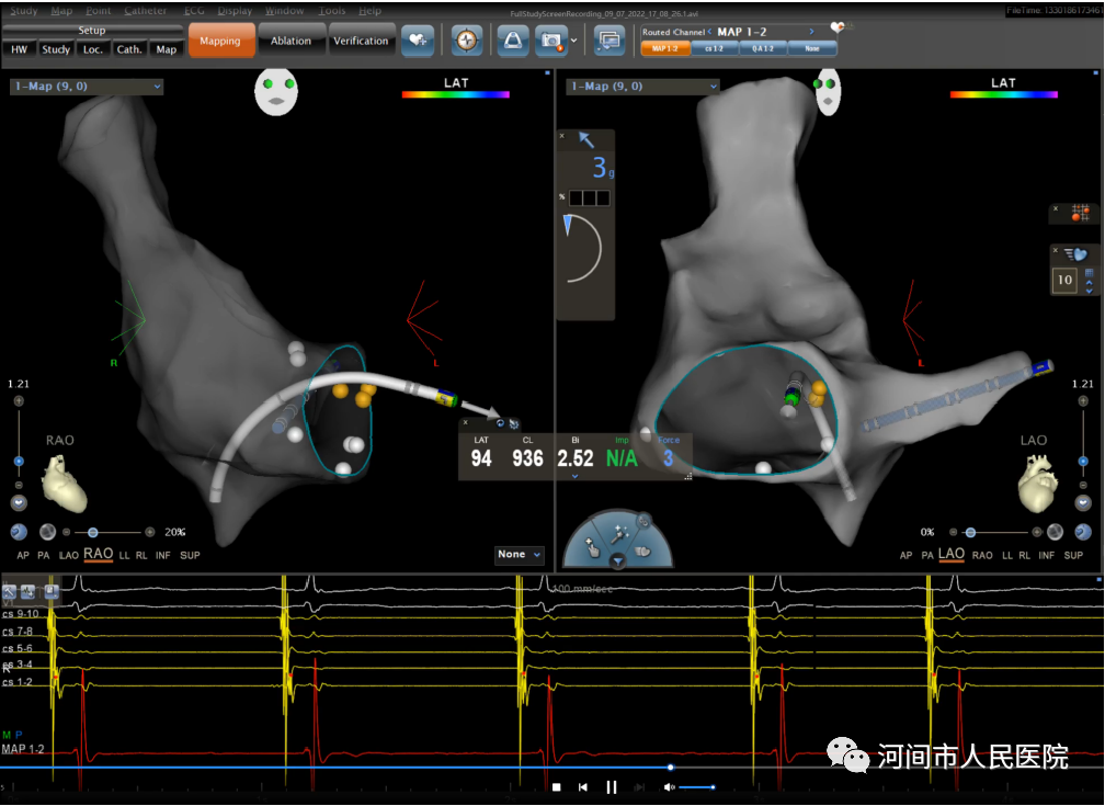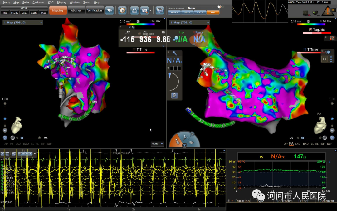 術前建立左房模型,心內(nei) 導管顯示心房跳到紊亂(luan)