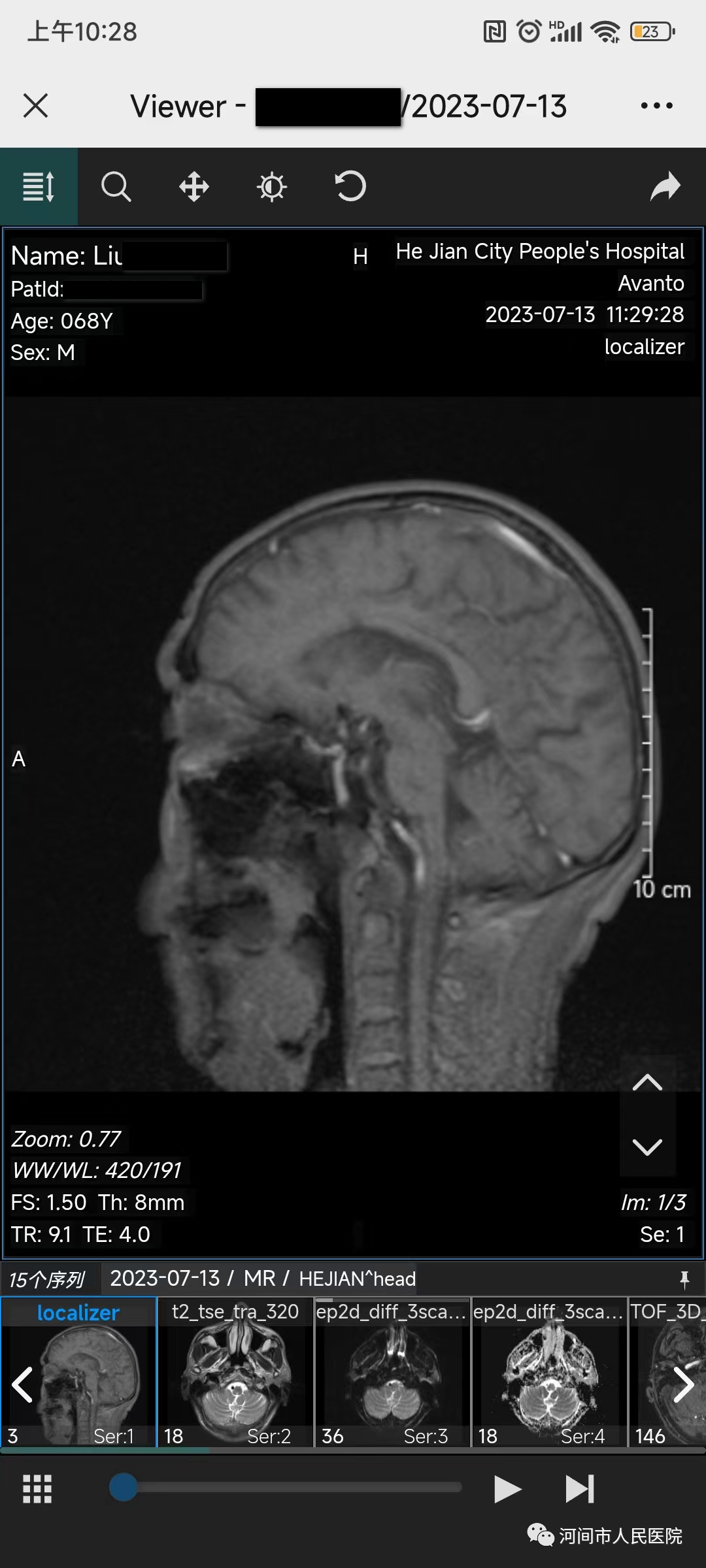 醫院在開展影像檢查時,將DICOM格式圖片存儲(chu) 在影像雲(yun) 平台上,患者可通過掃描二維碼隨時在手機上進行調閱、下載影像(磁共振、CT、放射)檢查結果。