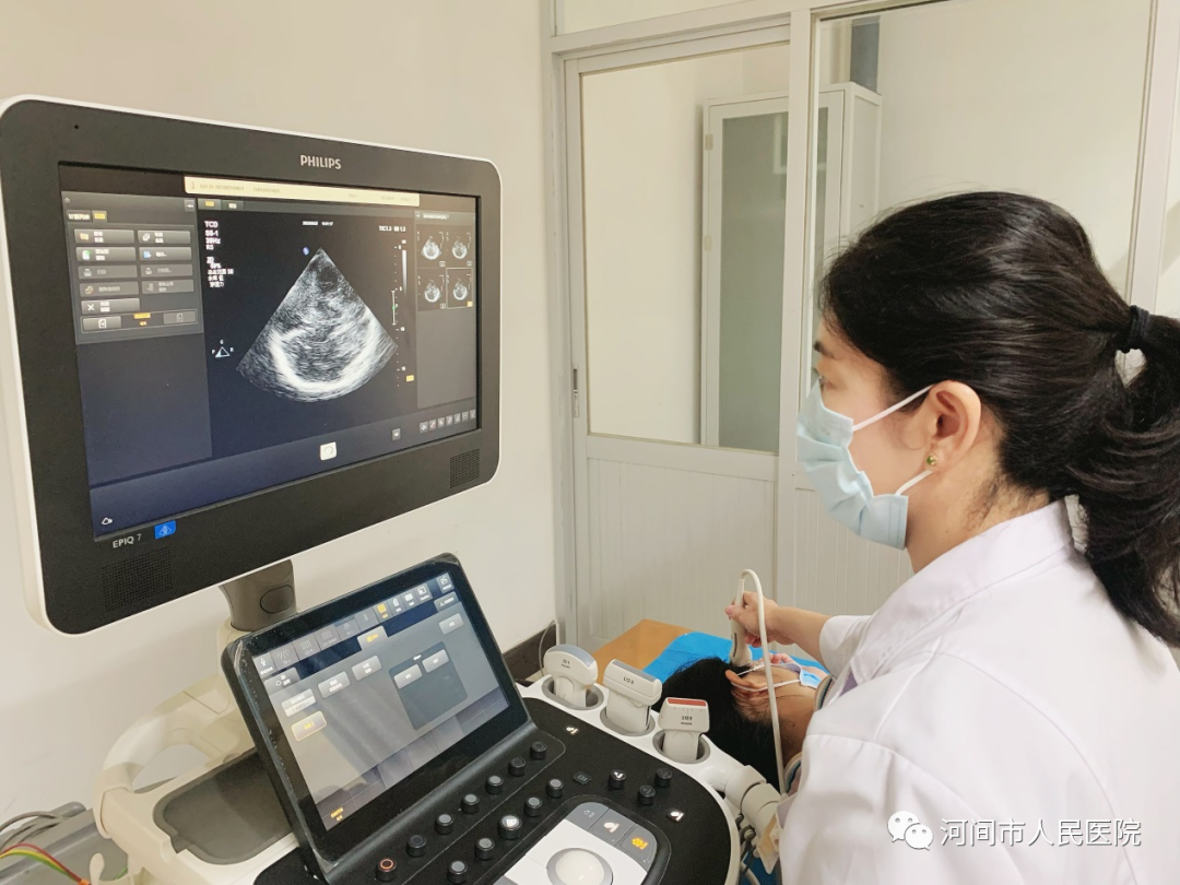 患者取仰臥位,檢查者將探頭緊貼於(yu) 患者顱骨兩(liang) 側(ce) 顳窗進行檢查。