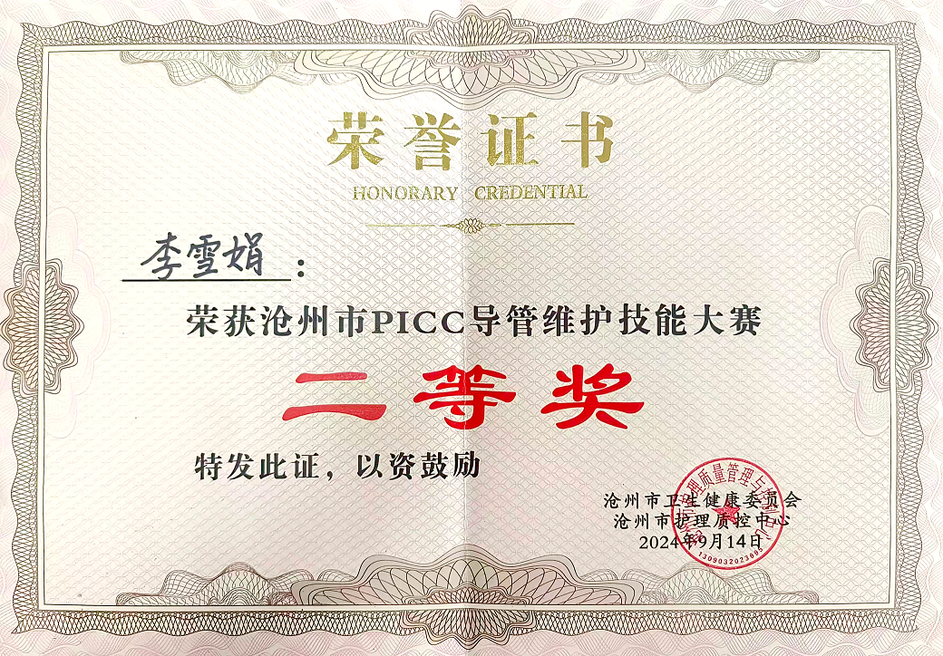 PICC導管作為(wei) 一種安全有效的置管技術,不僅(jin) 為(wei) 中長期靜脈輸液治療的患者提供了極大的便利,也極大地減輕了患者反複穿刺的痛苦,因此,提高護理人員的PICC導管維護技能,對於(yu) 保障患者安全、提升護理質量具有非常重要的意義(yi) 。我院將以此次比賽為(wei) 契機,進一步提升護理人員專(zhuan) 業(ye) 水平及實操能力,以優(you) 質高效的護理服務,為(wei) 河間市人民群眾(zhong) 的健康保駕護航!