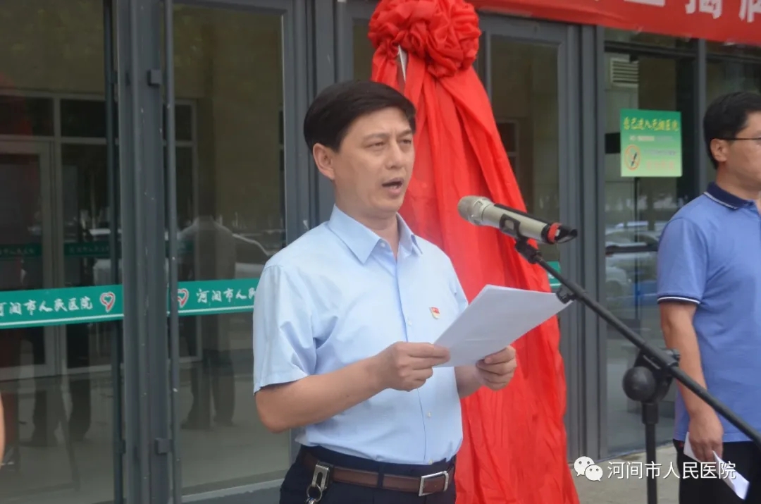 市委常委組織部長李國德、副市長李忠岐、副部長楊明輝、市衛健局局長馬江華、市直工委書(shu) 記戈兆升等領導出席。市醫院黨(dang) 委班子成員、全體(ti) 黨(dang) 員、全體(ti) 中層幹部、職工代表參加了揭牌儀(yi) 式。儀(yi) 式由市委常委、組織部部長李國德同誌主持。