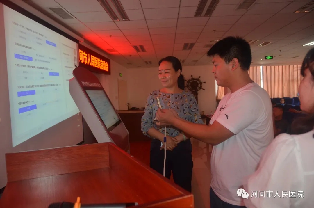 呼吸科主任李華為(wei) 大家演示診前問卷篩查機的使用
