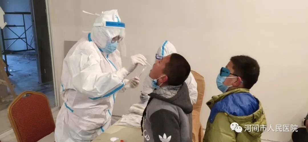 2021年1月5日 淩晨三點,雷竞技入口接到了馳援石家莊全民核酸檢測咽試子采集的通知,院領導立即組織王愛菊、王盼英、 王晗麗(li) 、夏青、趙嬌、高彥娜、劉柳、梁敬8名護理骨幹人員集合, 五點鍾從(cong) 河間出發,七點三十分到達槁城,經過短暫的休整和布置後,她們(men) 全副武裝,穿好防護服、佩戴防護麵罩、帽子、口罩、手套等,立即投入到緊張的工作中。