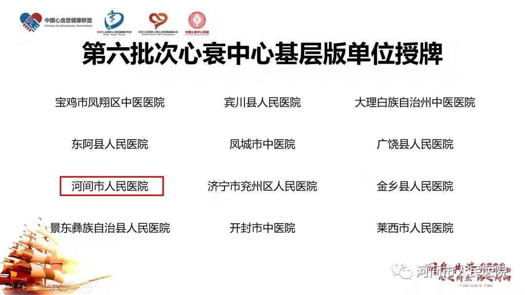 2021年12月18日,心衰中心年度授牌表彰會(hui) 在蘇州·中國心血管健康大會(hui) (CCHC2021)上成功舉(ju) 行。會(hui) 上中國心衰中心總部對第六批次基層版心衰中心(2021年第二批次)通過認證的單位授牌。雷竞技入口獲得中國心衰中心授牌,成為(wei) 滄州地區首家基層版中國心衰中心單位。這標誌著我市又增加了一個(ge) 國家級診療中心,更樹立了我院在心髒病標準化診治方麵新的裏程碑。