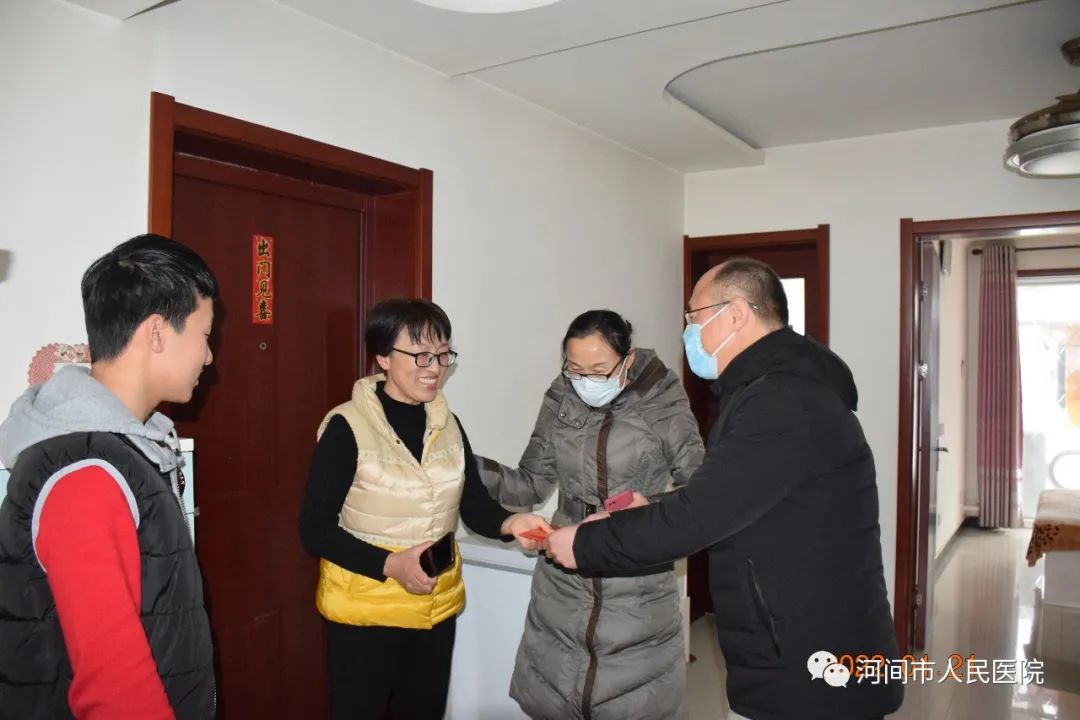 新春佳節將至,我院書(shu) 記李記濤、副書(shu) 記、院長趙景坡、副院長李冬梅及醫務科、護理部負責人一行6人先後來到我院支援北京冬奧會(hui) 的醫務人員張曉東(dong) 、陳建軍(jun) 、謝成業(ye) 、劉洋4位同誌家中走訪慰問,為(wei) 其家屬送去新春祝福和問候。