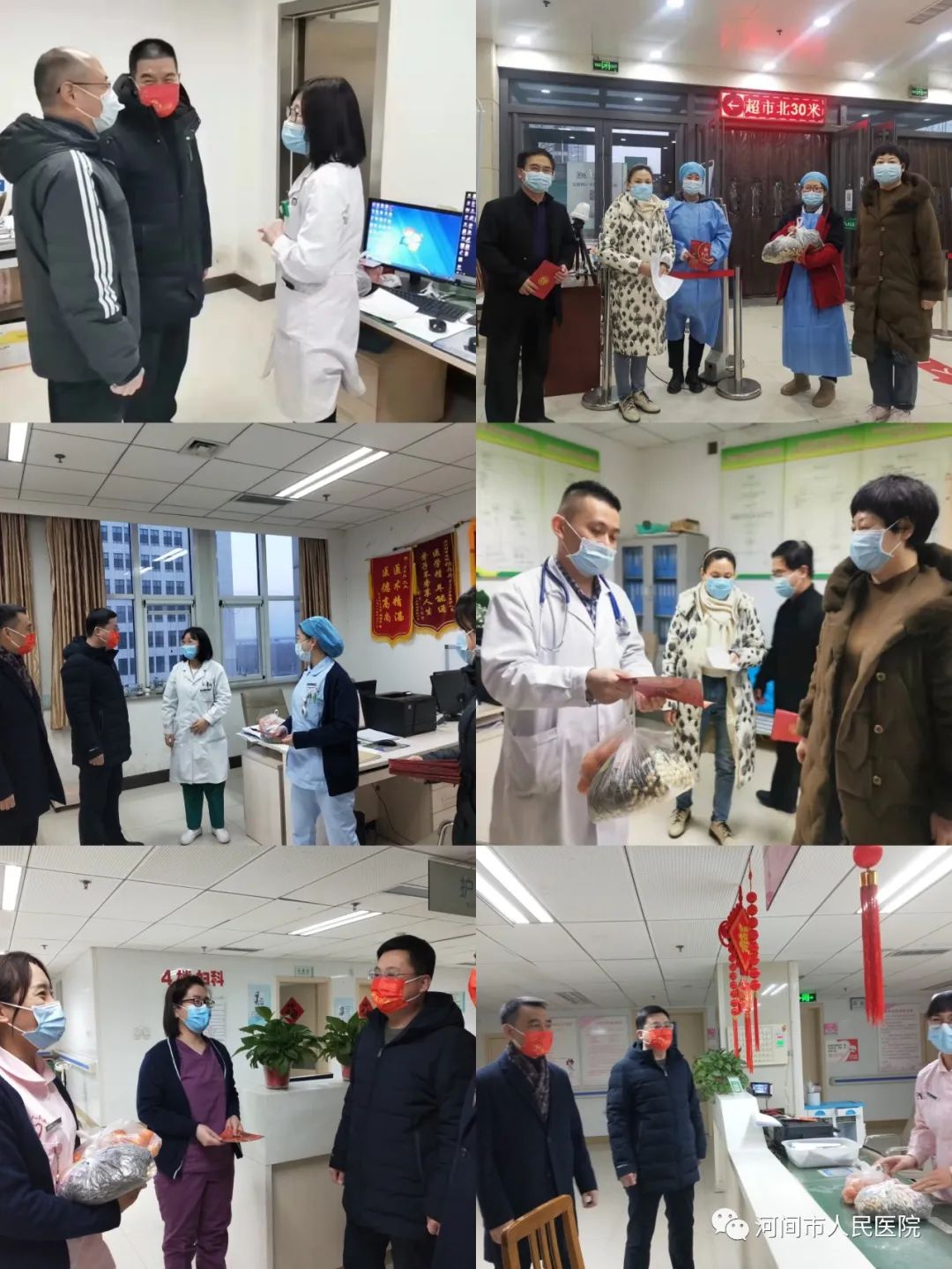 “過年好!給大家拜年!你們(men) 辛苦了!”每到一處,院領導都會(hui) 向在崗職工致以新春佳節的美好祝願,同時把準備好的“大禮包”送給他們(men) 。